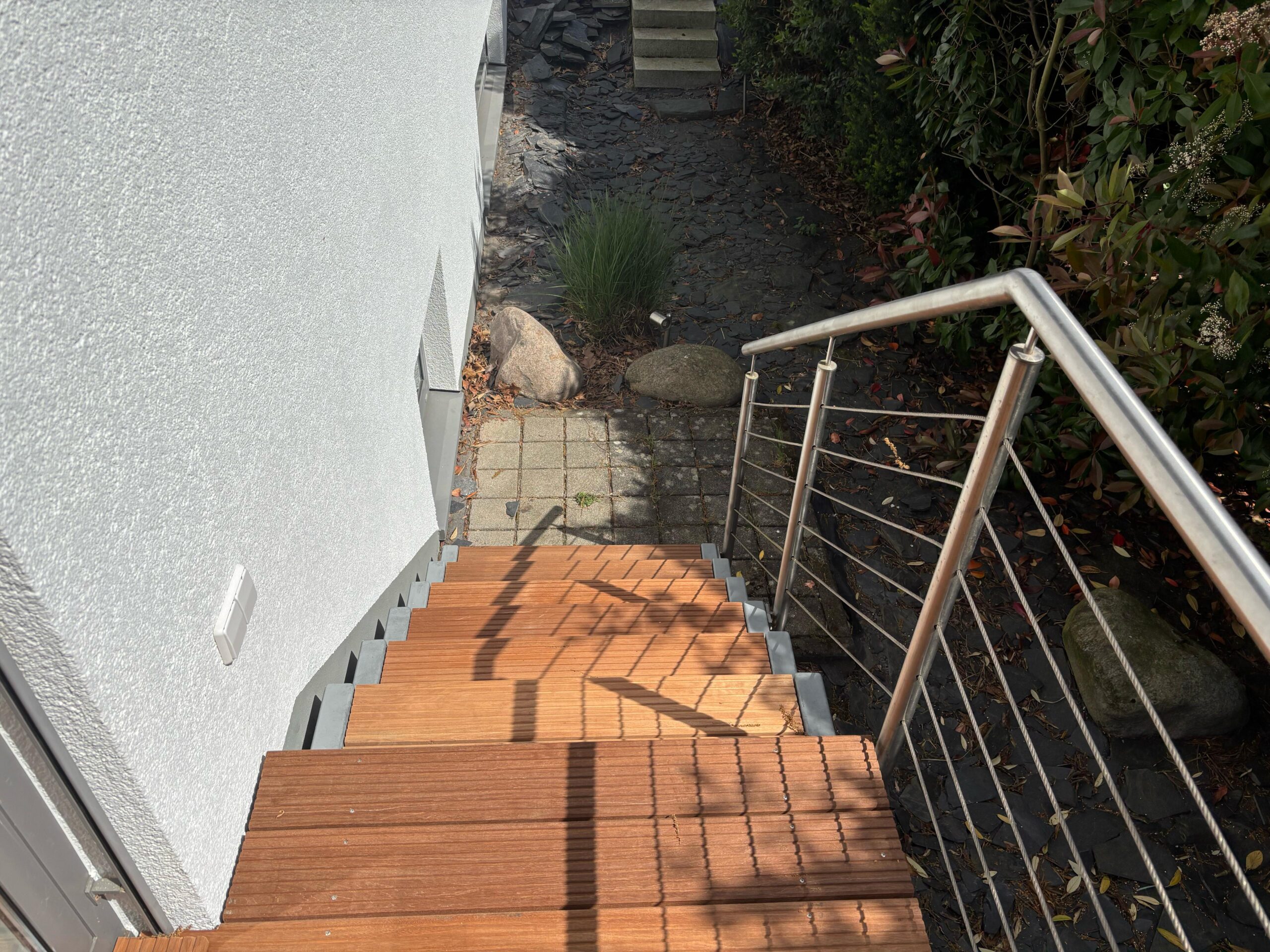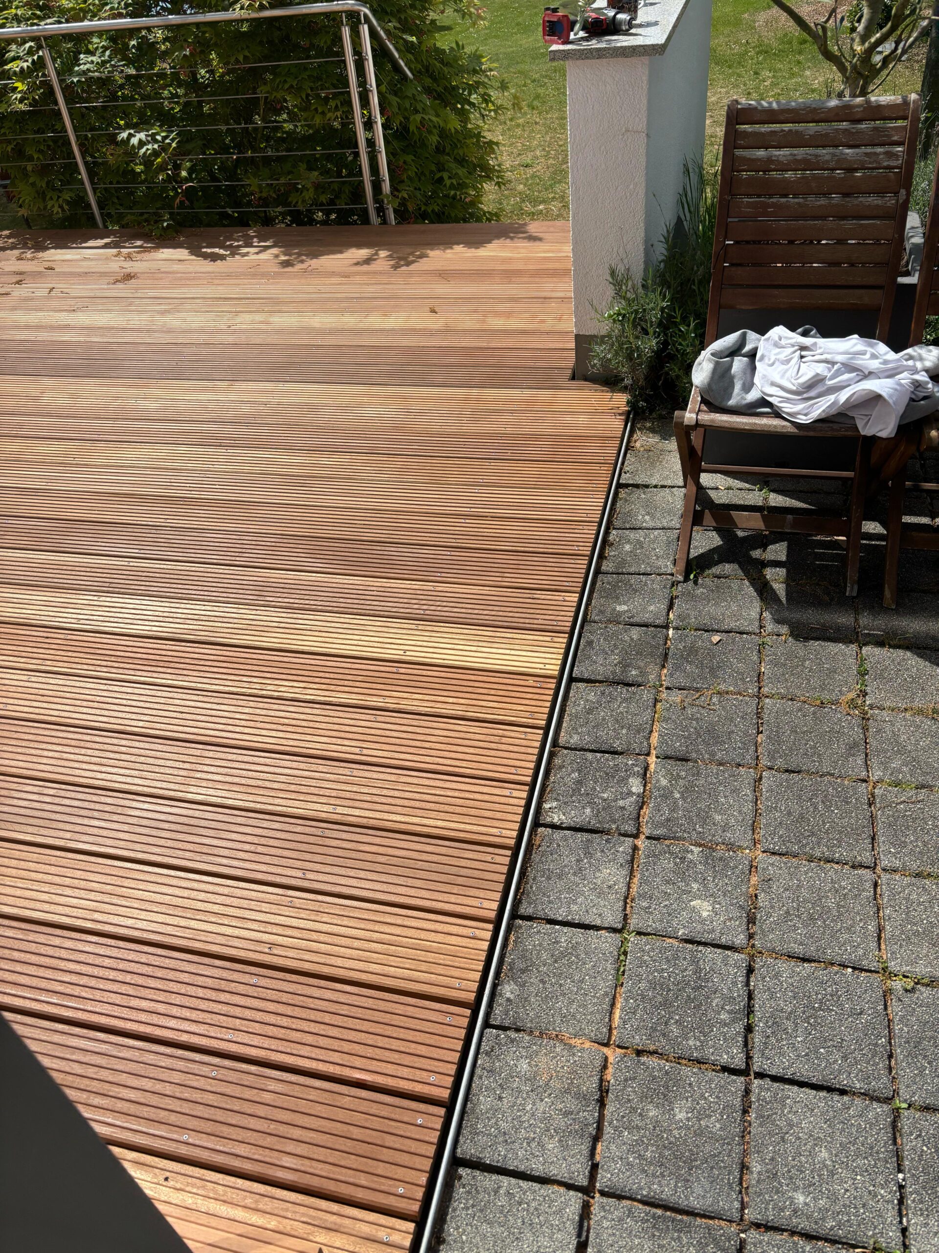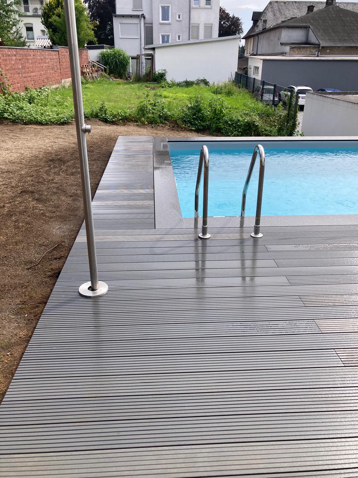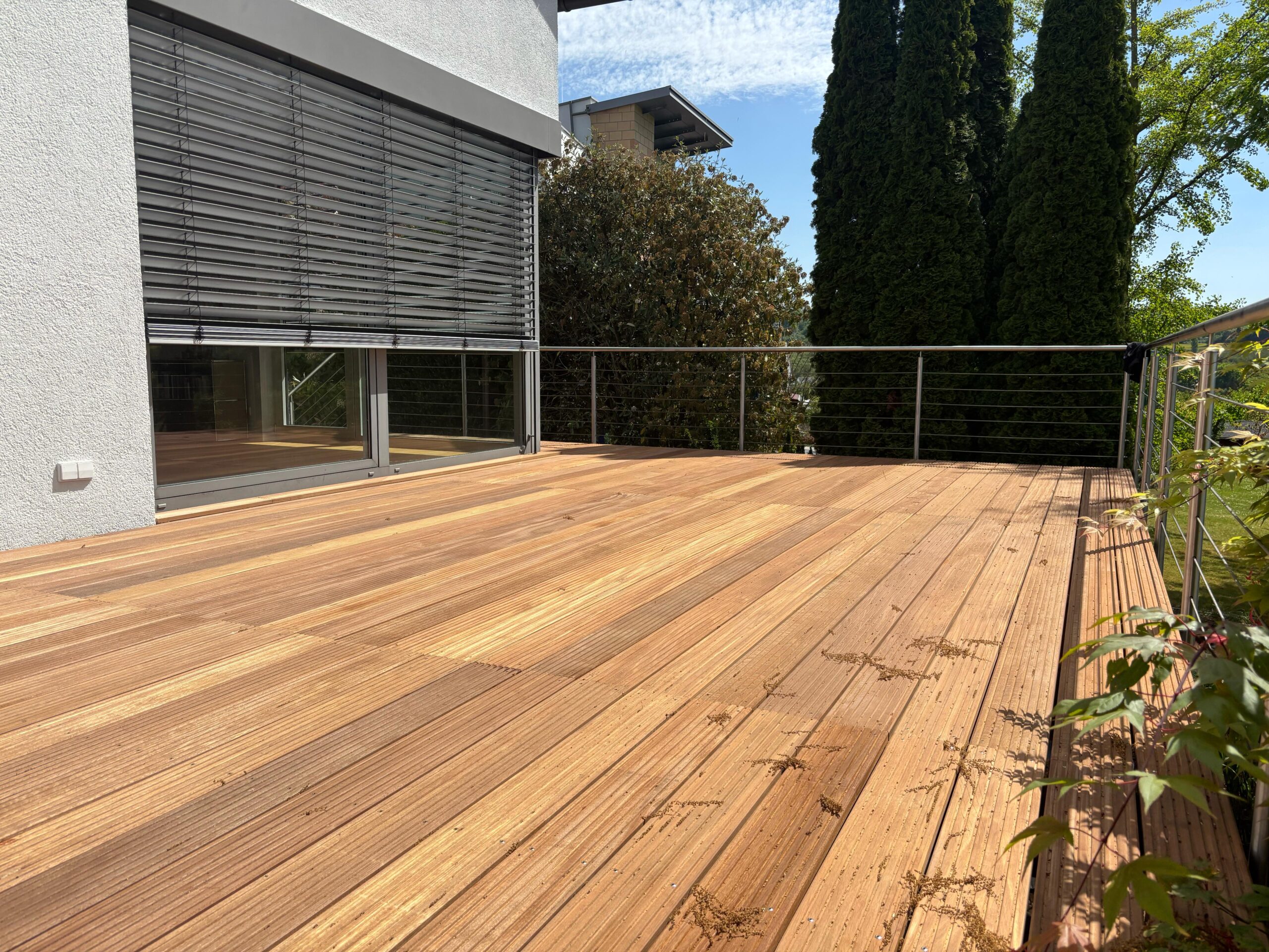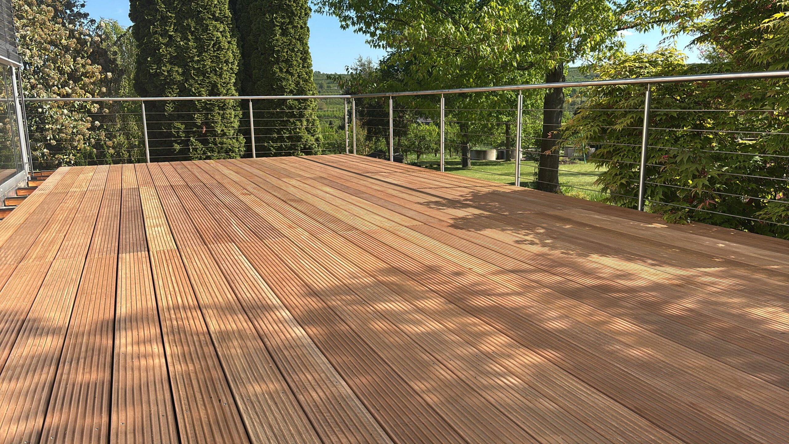 Ein Terrassenbelag aus Holz verwandelt Ihren Außenbereich in eine Wohlfühloase. Holz ist angenehm barfuß begehbar, strahlt Natürlichkeit aus und fügt sich harmonisch in jede Gartenlandschaft ein. Wir bieten langlebige und wetterbeständige Holzarten, die für eine hohe Qualität und lange Lebensdauer sorgen. So entsteht eine Terrasse, die nicht nur optisch begeistert, sondern auch pflegeleicht und nachhaltig ist